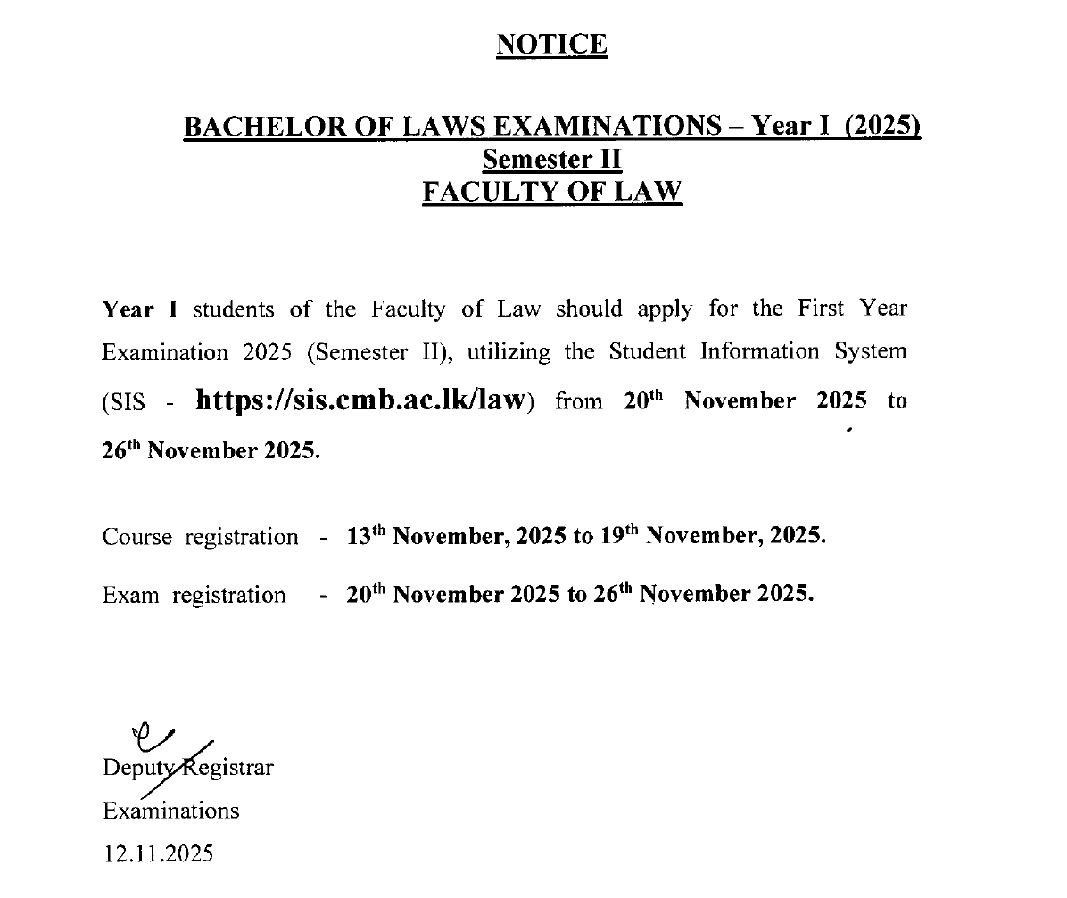 Bachelor of Laws Examination, Year I Semester II 2025 by Admin Law - Wednesday, 12 November 2025, 3:48 PM Number of replies: 0 Permalink