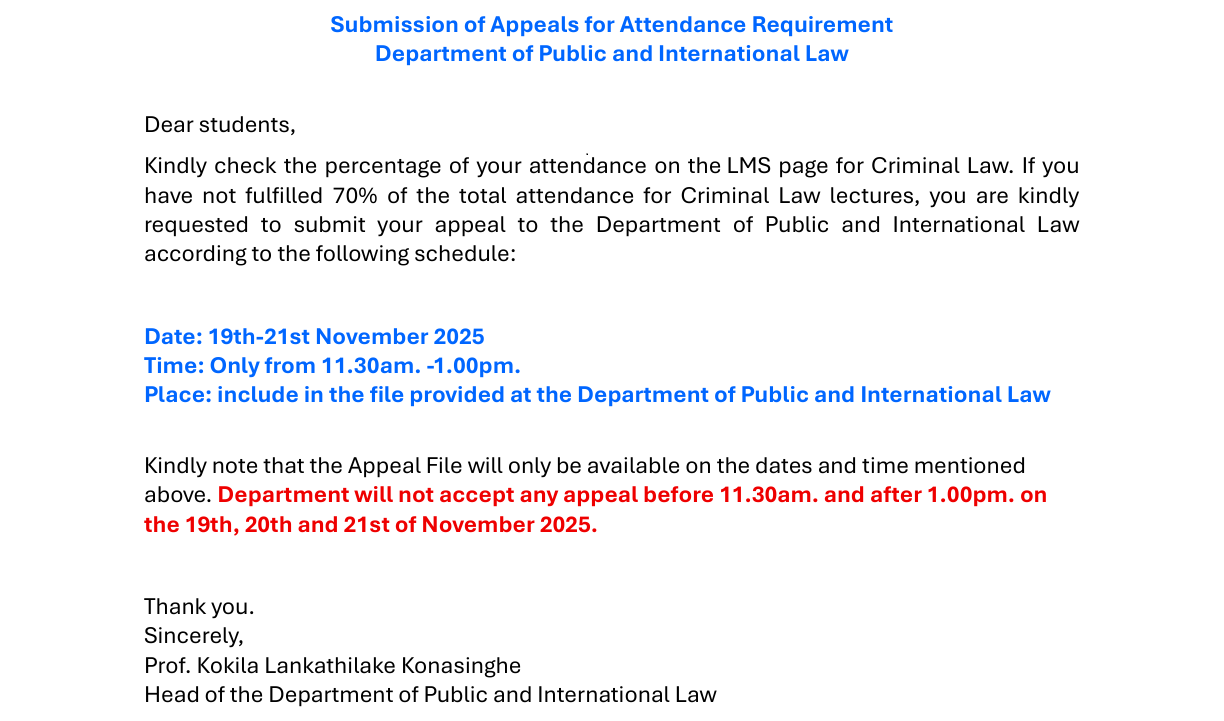 Submission of Appeals for Attendance Requirement by Admin Law - Tuesday, 18 November 2025, 3:22 PM Number of replies: 0 Permalink
