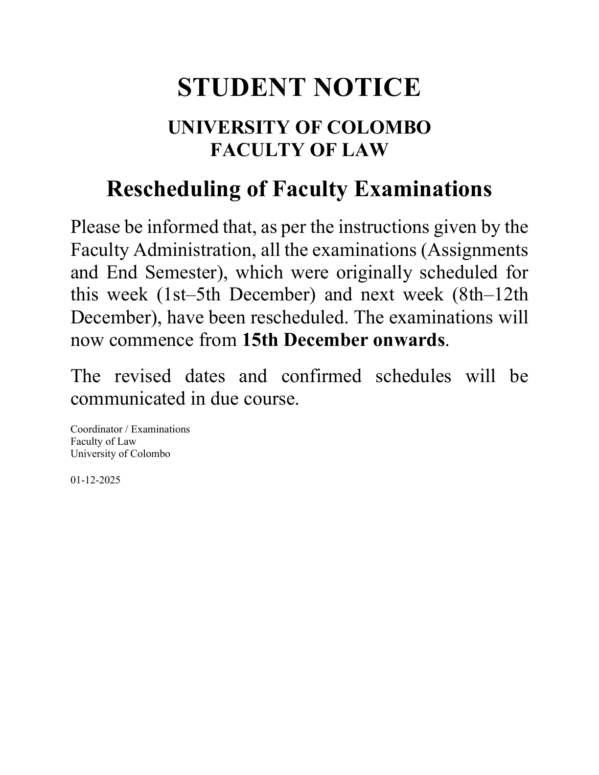 Rescheduling of Faculty Examinations by Admin Law - Tuesday, 2 December 2025, 11:37 AM Number of replies: 0 Permalink